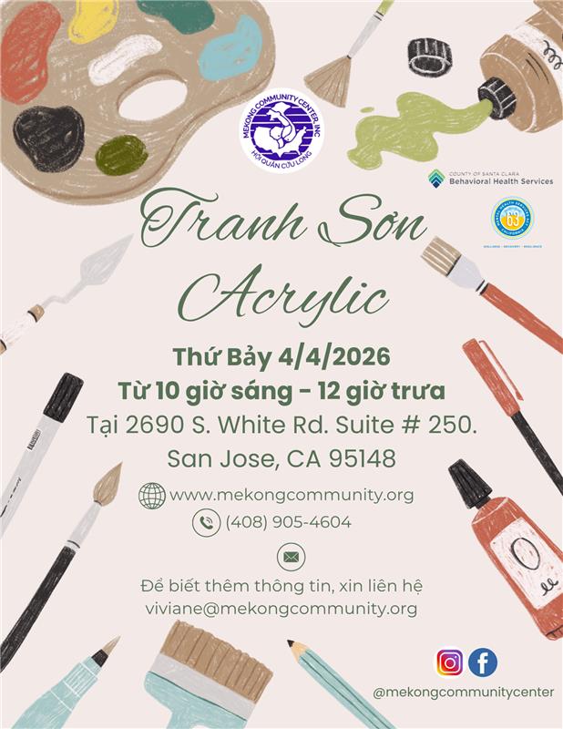 A community acrylic painting event for clients, staff, and adult community members — focused on creative arts, held at the Wellness Center of Mekong Community Center